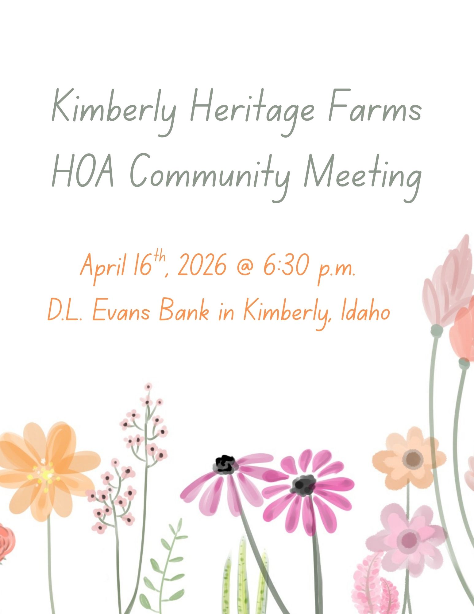 HOA Meeting April 16, 2026, at 6:30 p.m.